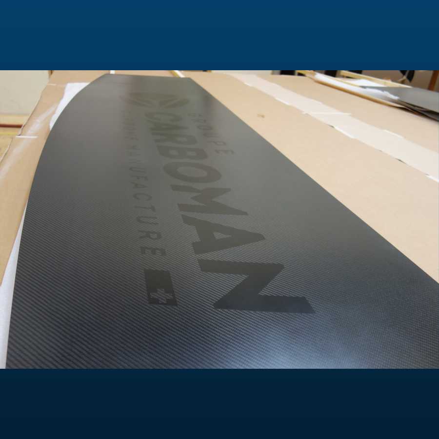 Réalisation de deux panneaux en carbone avec le logo Groupe Carboman pour la table de conférence de la nouvelle halle "Grand Sud" de la société Multiplast.